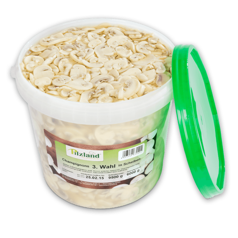 Extrem frische Rohstoffe sorgen für ein geschmacklich starkes Aroma. Wir verarbeiten hauptsächlich handgeerntete Ware aus unseren eigenen Zuchtbetrieben. Patentierte Eimer mit Originalitätsverschluss, Deckelheber und Stapelrandfixierung sorgen für einen reibungslosen Transport und gute Lagerfähigkeit. Bis zu 14 Wochen sind die Pilze ab Produktion (gekühlt bei 2°C bis 7°C gelagert) haltbar.